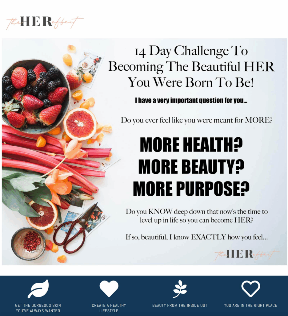 The landing page leads with aspirational, qualifying questions (“Do you ever feel like you were meant for more?”) that emotionally connect with visitors. The simple layout keeps attention focused on the challenge.