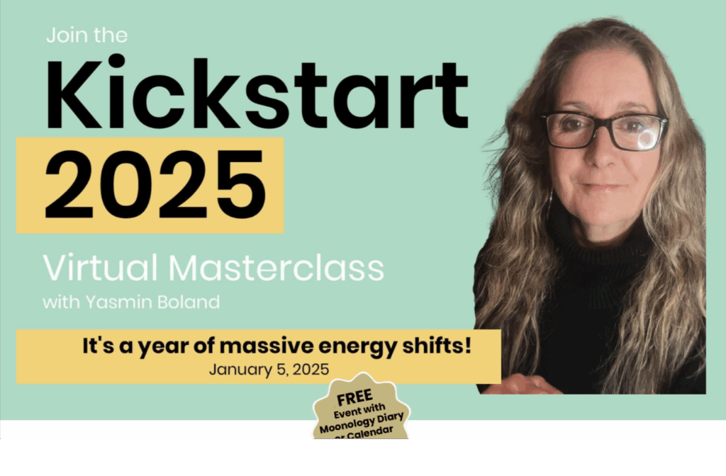 The poster grabs attention with “Kickstart 2025,” highlighting relevance and timing. Featuring Yasmin Boland adds credibility, the “massive energy shifts” hook intrigues, and the free incentive plus speaker photo boost trust and sign-ups.