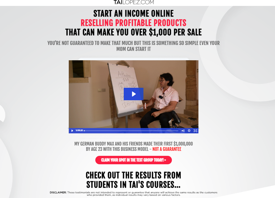 5. Tai Lopez – Online Income Reselling Funnel