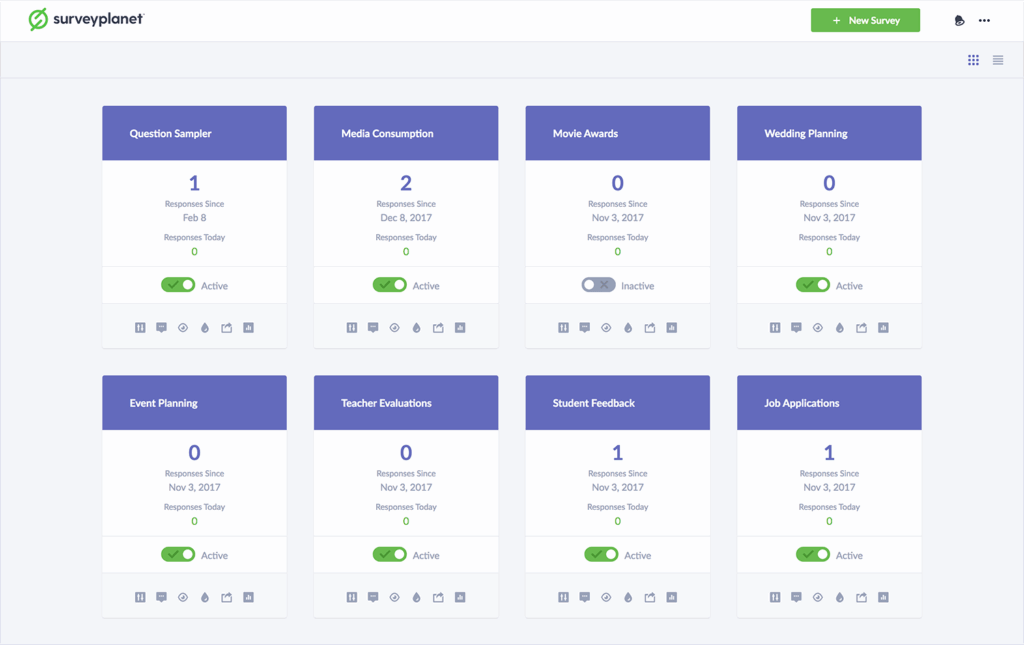 - Template-rich builder: Large collection of ready-made surveys and question types.