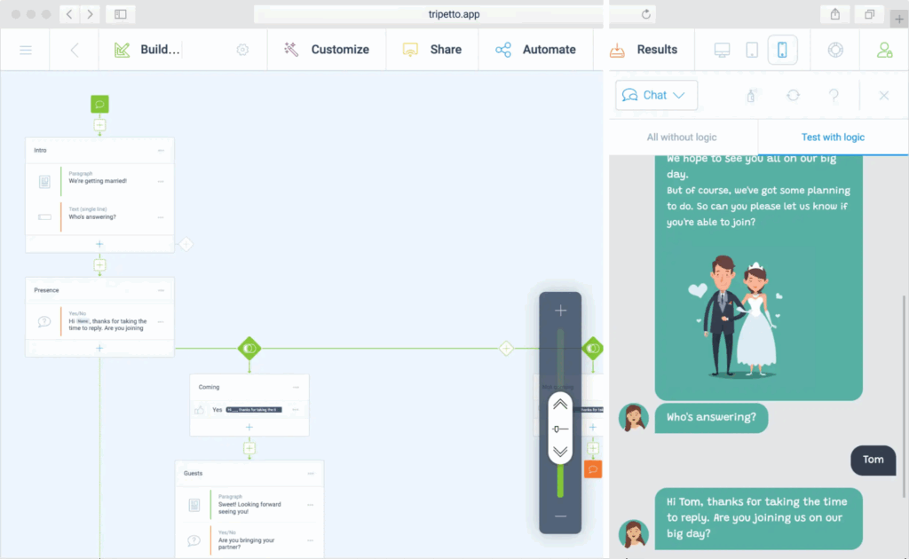 The visual “flow” builder lets you design complex paths and then present them as chat-like forms, classic forms, or other “faces” without changing the logic underneath. It’s a smart pick if you want highly interactive, on-brand experiences that still live entirely inside WordPress. The downside is that you’ll pay Pro pricing for features like notifications, integrations, and removing Tripetto branding.