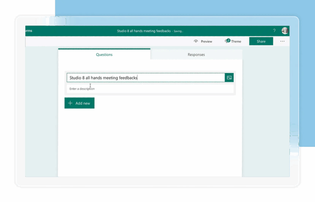 7. Formularios de Microsoft | Sincronización de Excel y Teams para las respuestas | Incluido gratis con Microsoft 365 | Sin precio independiente |