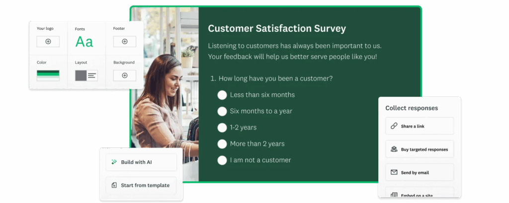 9. SurveyMonkey | Análisis de IA + puntos de referencia | Disponible (versión básica) | A partir de 34 $/mes |