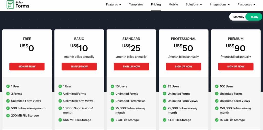 - Personalización limitada del diseño y la marca en comparación con los creadores de formularios modernos