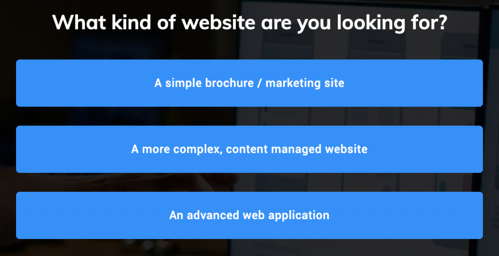 Les boutons sont le moyen idéal de commencer votre formulaire – ils ont une friction très faible par rapport aux champs traditionnels.