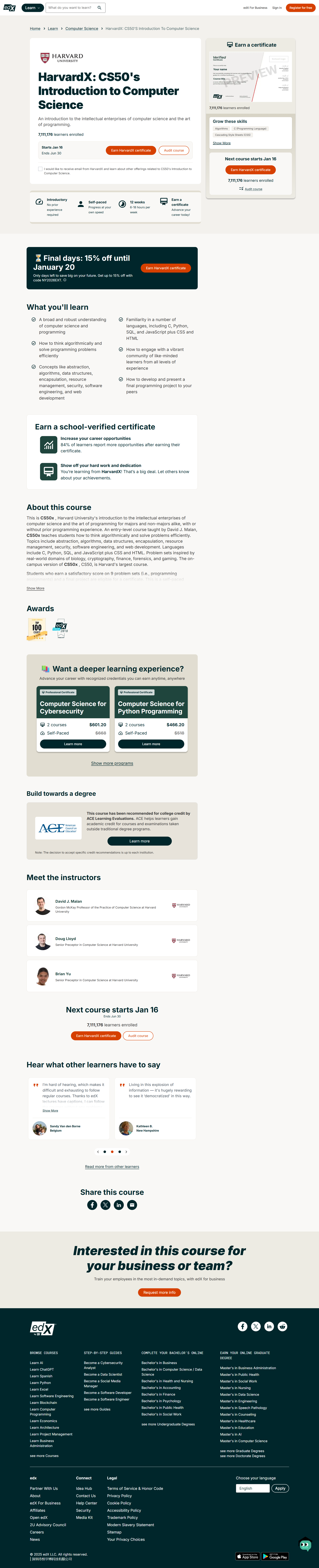 Home » landing page examples » HarvardX: CS50’s Introduction to Computer Science