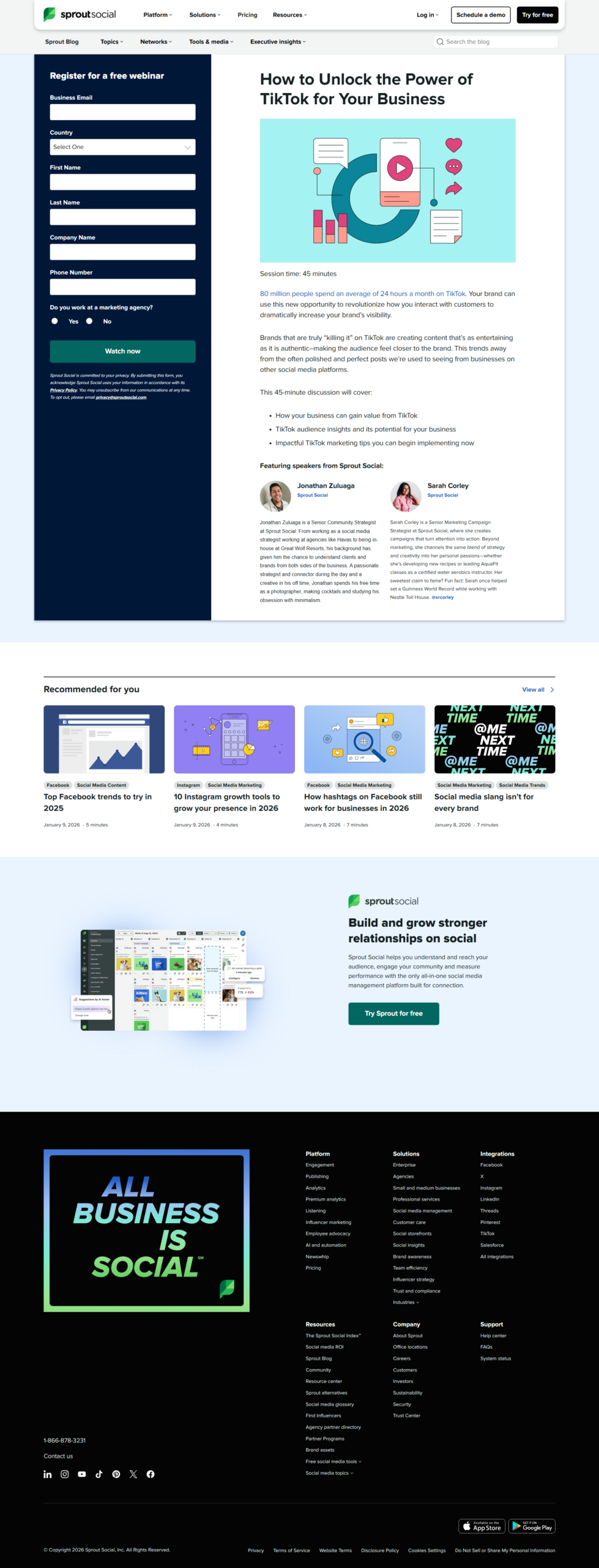 Sprout Social’s “How to Unlock the Power of TikTok for Your Business” webinar teaches brands how to use TikTok to reach new audiences, improve visibility, and apply practical TikTok marketing tips to grow their business.
