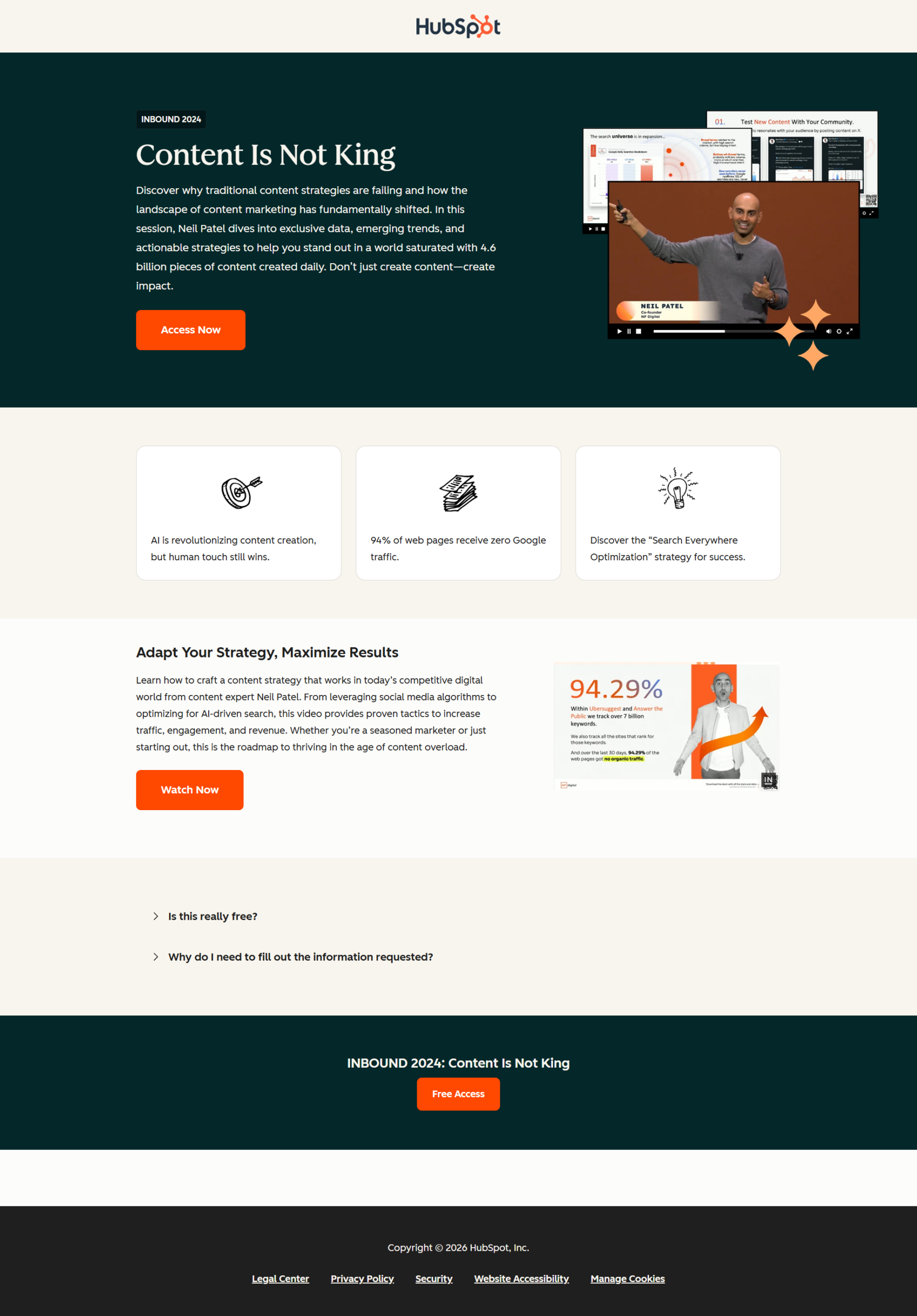 Home » landing page examples » INBOUND 2024: Content Is Not King