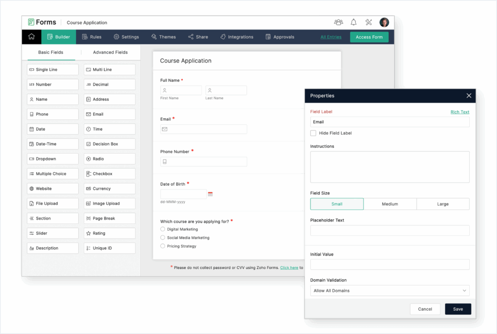 - Customizable Templates: Access over 100 templates to quickly create effective forms.